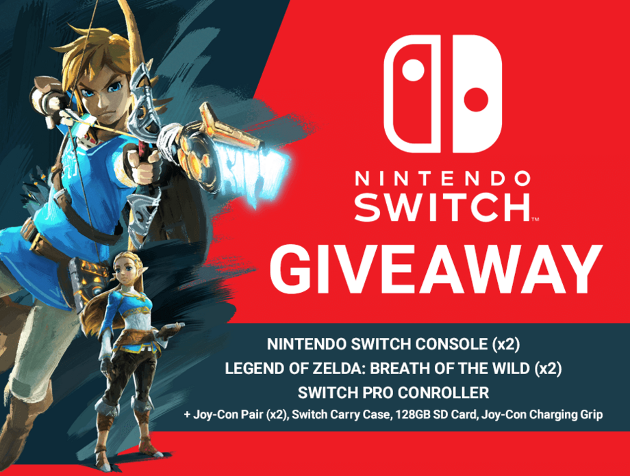 1st Prize: Nintendo Switch Console (Grey), Legend of Zelda: Breath of the Wild, Switch Pro Controller, Joy-Con Pair (Grey), Official Carry Case and a 128GB SD Card.