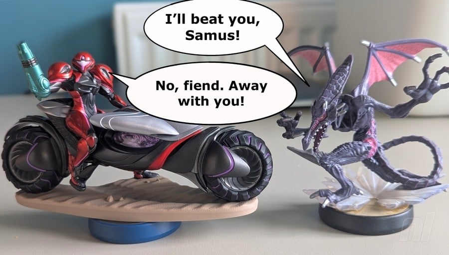 And we can't let you go without seeing how the new amiibo stacks up next to Samus' old arch nemesis Ridley. The poor guy looks positively tiny!