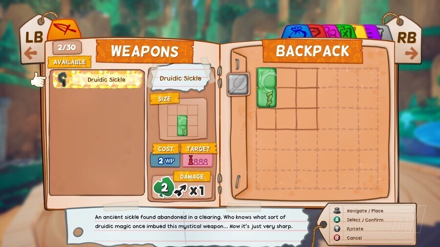 Even though Born of Bread is very clearly inspired by Paper Mario, it has enough of its own ingredients to rise above the competition. For one, Loaf's skills are tied to the weapons and items he carries in his inventory, and it's not just a case of picking up the item and having constant access to it. There's a dash of Resident Evil 4-style inventory management, where you have to fit each item into a grid before you can use it.