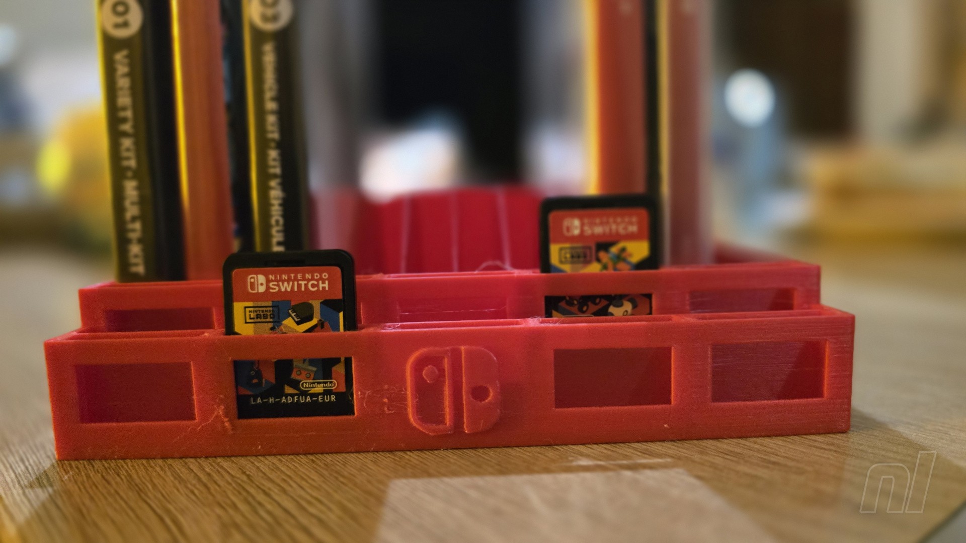 This very useful display storage is well worth printing out for any serious (and very professional) Switch gamer, such as myself, as not only can it hold lots of lovely game cases and some carts at the front (with gaps so you can see their stickers!), it can also be added to a clever wall-mounted system - for which you print off a few extra parts.