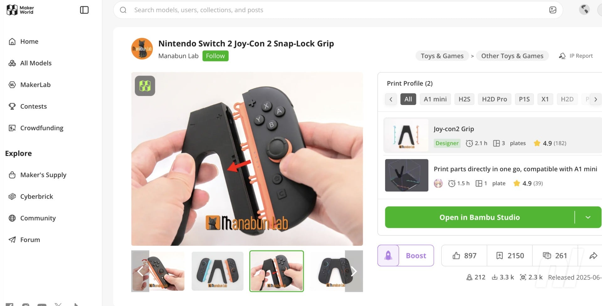 Creator/Creation Link: Nintendo Switch 2 Joy-Con Snap Lock Grip By Manabun Lab