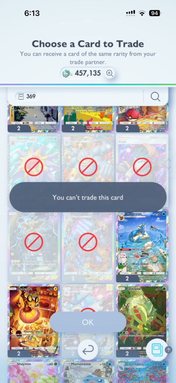 A good example of this (that later got ‘fixed’) is how you trade. TCG Pocket launched without the ability to do so — despite the name of the game — and when it did debut, it came with another new currency and restrictive rules around what cards you could trade, enticing you to spend more real-world money on packs, as gacha games are wont to do.