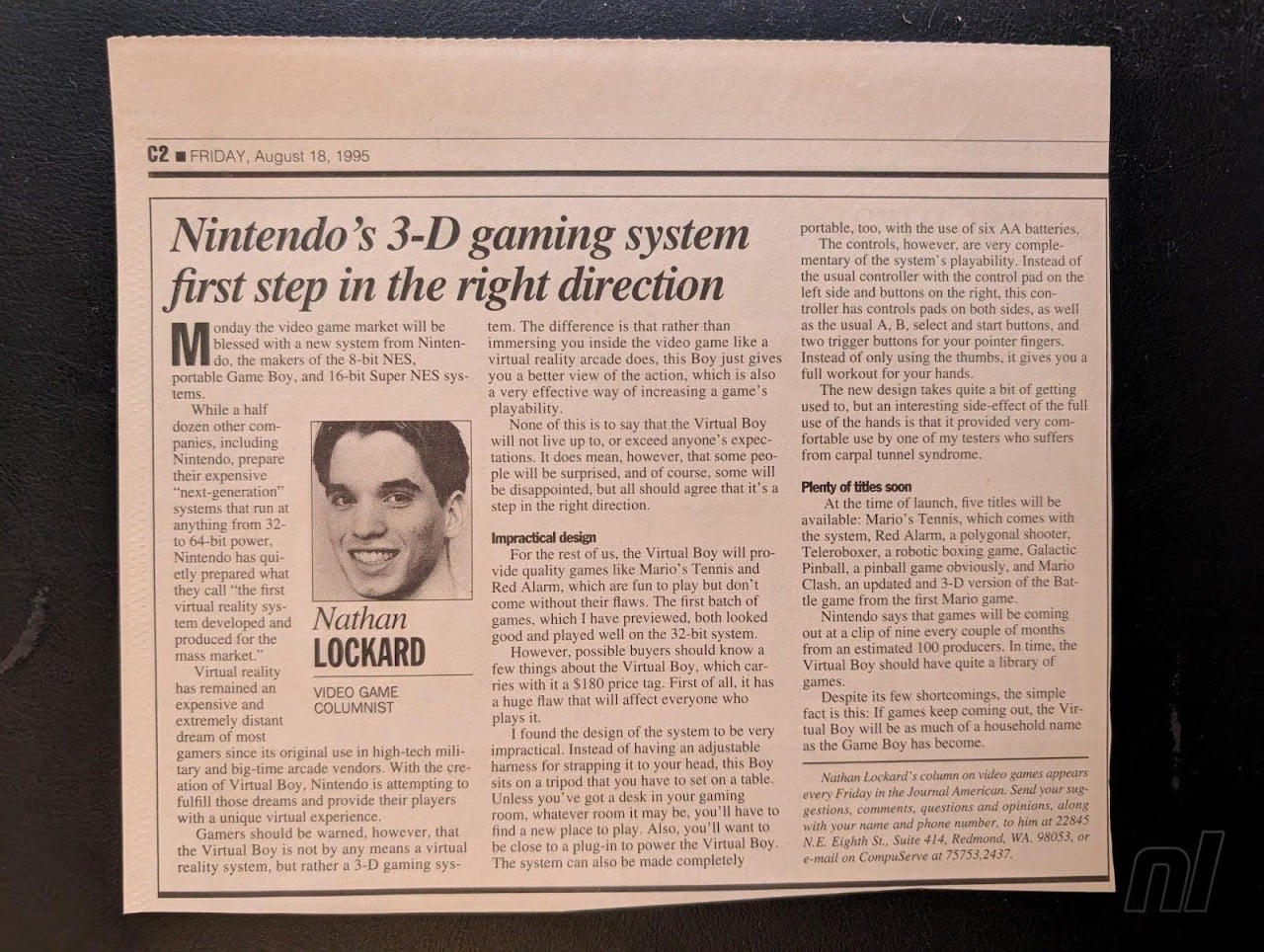 For most, the Virtual Boy is more meme than memory - particularly for European gamers who missed it entirely. When it launched, I was a video game columnist for the Journal-American, right in the heart of Nintendo of America's backyard: the Seattle Eastside. My journalistic credentials earned me an early look at the Virtual Boy, plus day one copies of the console and all four launch titles.