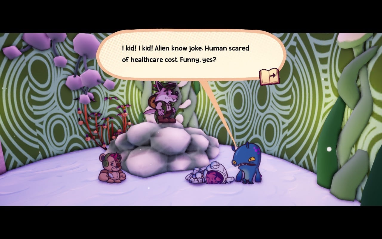 The reason this new game gets the job done where similar attempts have failed is in its writing and characterisation. Tinder, Wolfgang, Eva, and Patches are each zany, funny, and heartfelt in turns, and – though they aren’t quite as batty as TTYD's cast of weirdos – they have even more to say about the “Real World” that they’re questing for. These companions’ interactions with Flynt and the characters they meet along the way have given me hope in a new year that hasn’t had a whole lot of good in it to date.