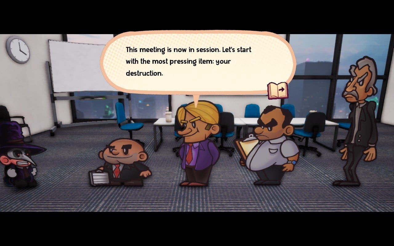 Then, they embark on their first adventure in the Three Little Pigs storybook, a level that sets the tone for the game as one that mixes humour with commentary about the role art has to play in a society built on capitalist moneymongering.