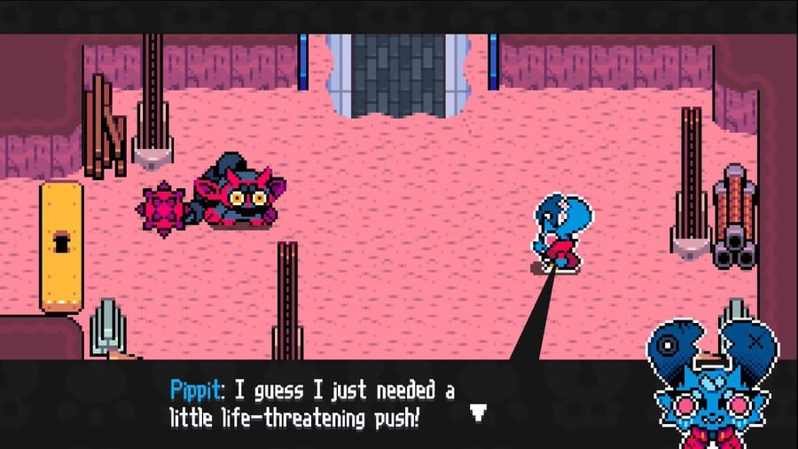 Pipistrello may wear its influences proudly on its sleeve, but it’s all the better for it in my eyes. It gives the ever-popular top-down Zelda formula a shot of spiritedness, a dash of brashness, and a pop of colour. This isn’t a game about saving one person or saving the world from a great evil – the evil here is capitalism, people trying to make a profit to benefit their own industry. And Pippit recognises that the four industry bosses are part of the problem, but the ultimate problem is caused by his aunt.