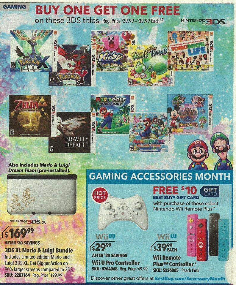 You get to buy one, get one free on 3DS games at Best Buy starting on July 20th. Games are:
