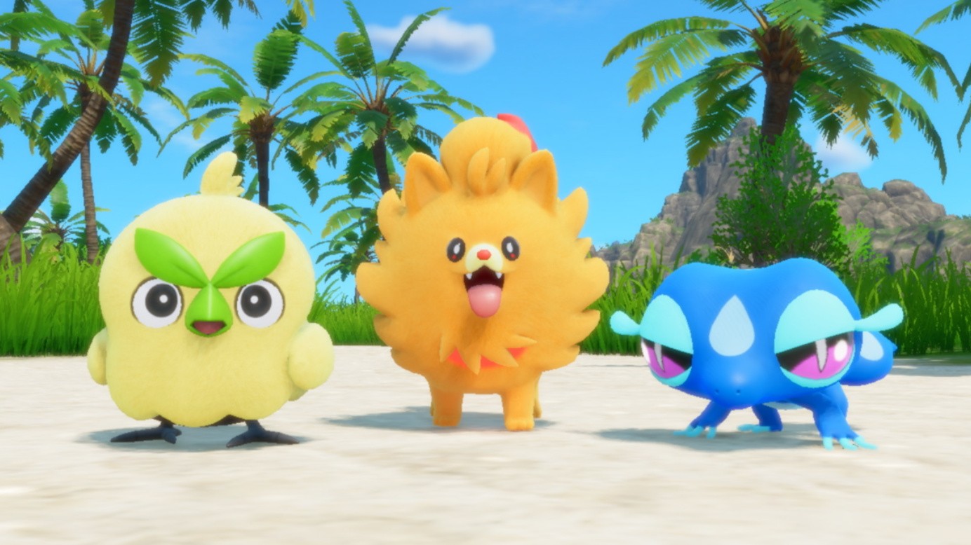Your main character will sport a different outfit depending on which version of the game you play—and of course, you’ll set out with one of three first partner Pokémon. Will you choose a Grass type by partnering with Browt, the lively but clumsy Bean Chick Pokémon? Or perhaps you’ll heat things up with a Fire type by picking Pombon, the guileless and friendly Puppy Pokémon. If Water types are more your speed, then the intelligent Water Gecko Pokémon, Gecqua, might be the partner for you.