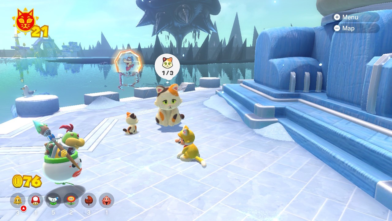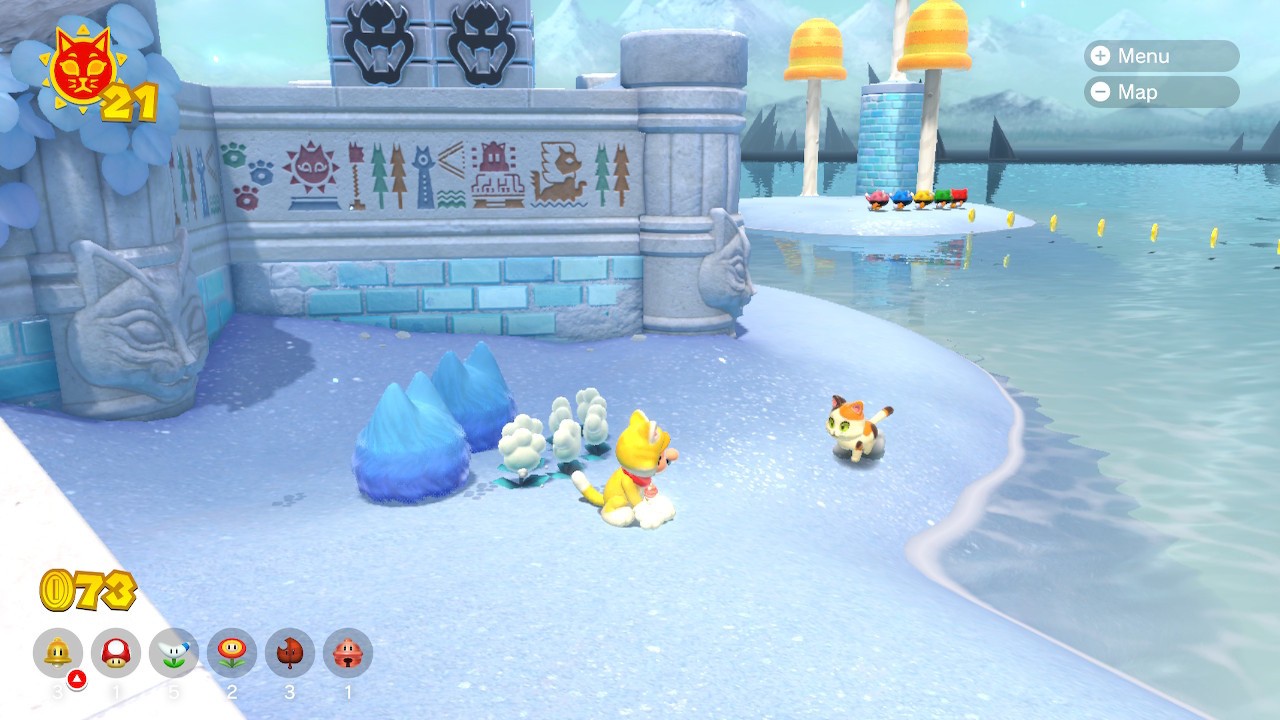 Remember that floating iceberg island you took between Trickity Tower and Crisp Castle Climb? You may have already noticed (and collected!) a Cat Shine floating in the air just above it. Time your jump carefully and it is yours.