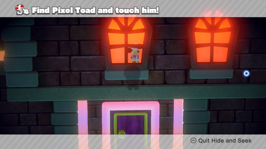 Spin the camera 180 degrees and you'll find Pixel Toad in one of the upstairs rooms.