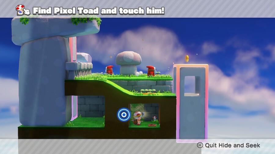 Head to the section where you found the first gem and you'll find Pixel Toad behind the stack of coins.