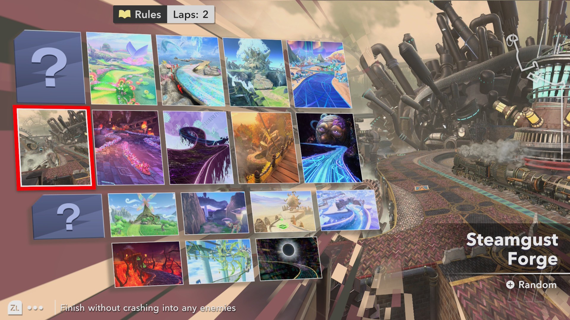 - Finish a race in Steamgust Forge without touching the molten steel