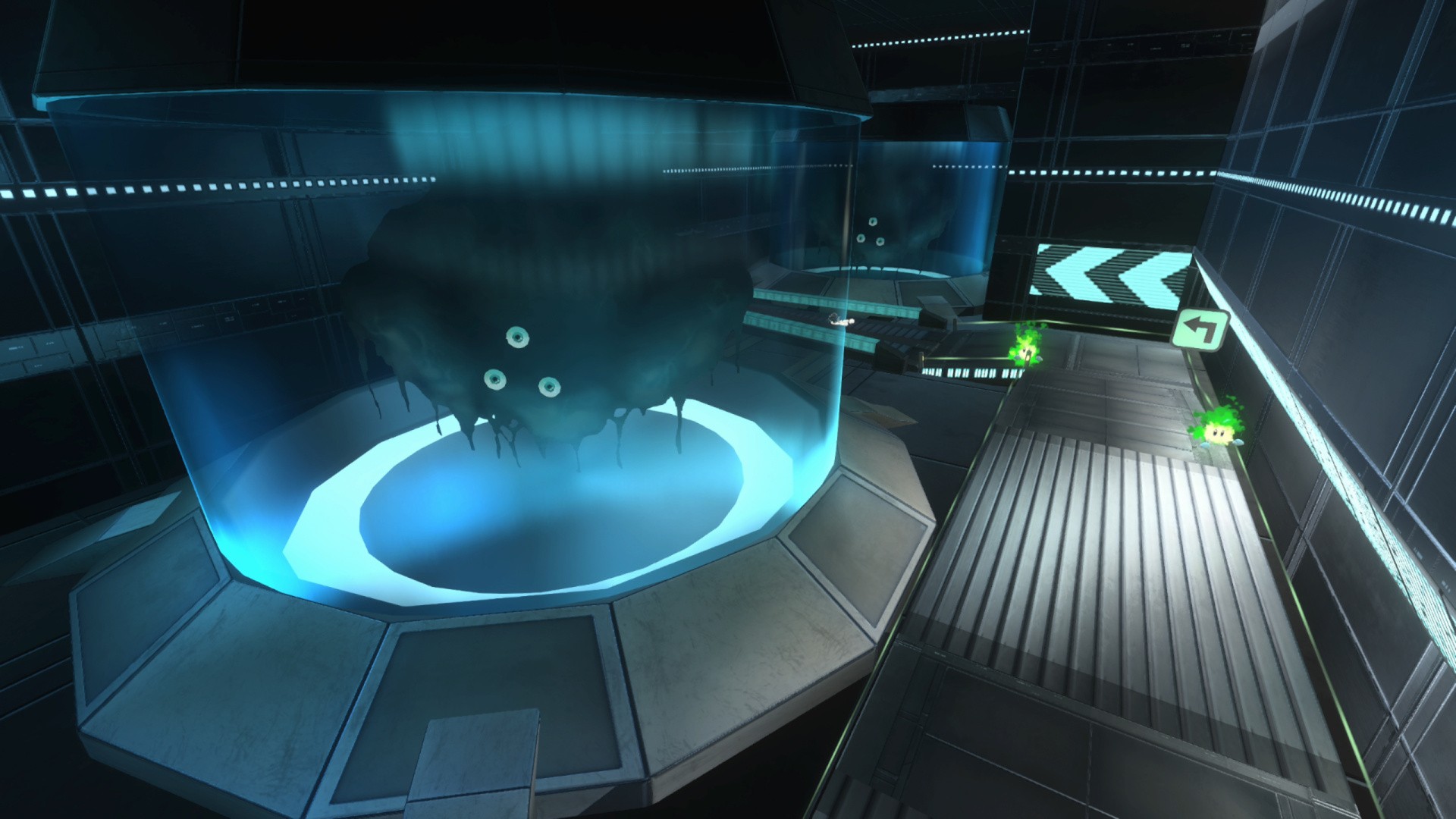 Obligatory steampunk setting replete with giant cogs, clocks, and lots of strange neon tubes poking out from amidst the brass and metal.