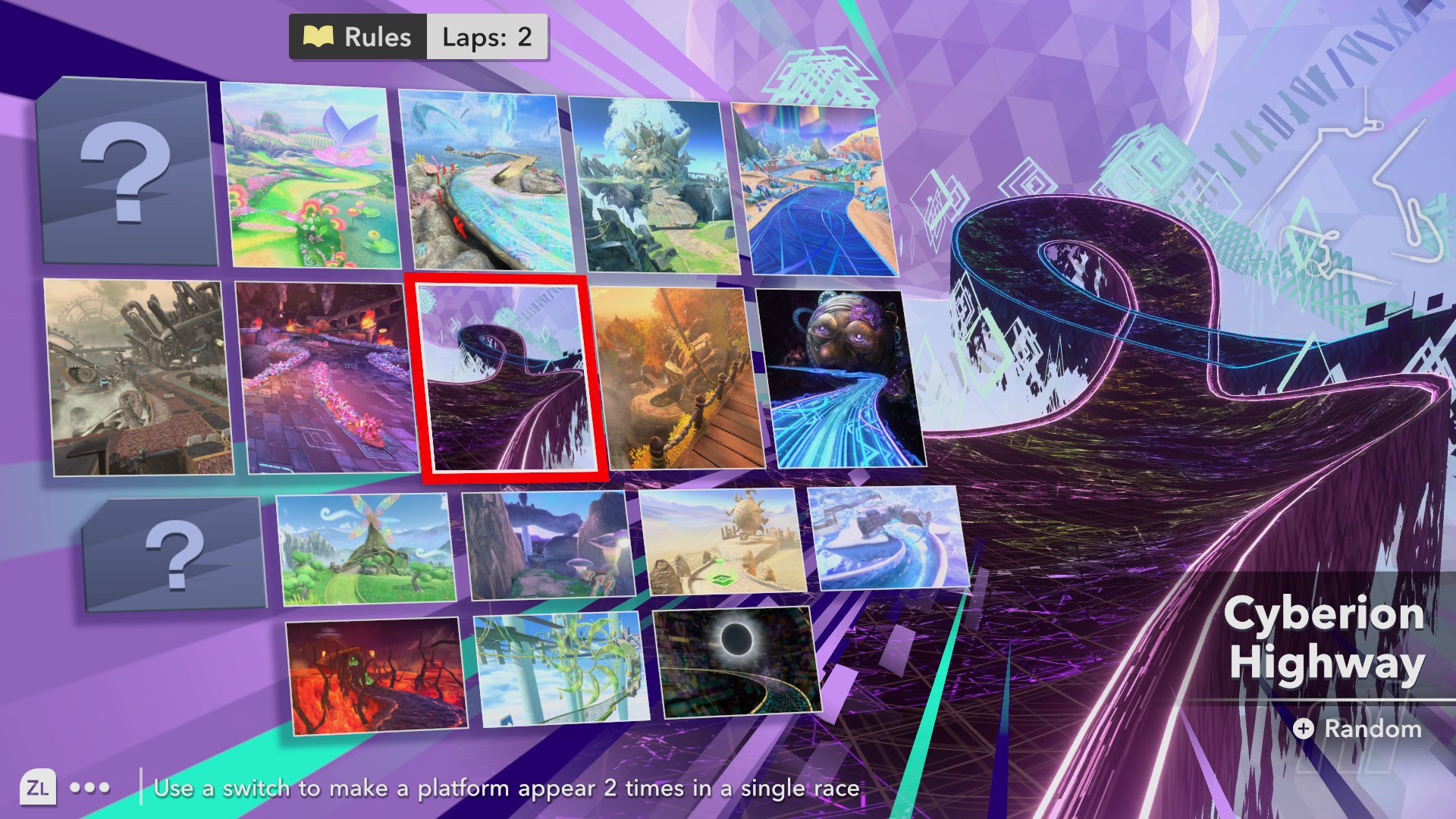 Rainbow colours, speed boosts, and teleports make up the Cyber track, an angular version of Cyberion Highway.