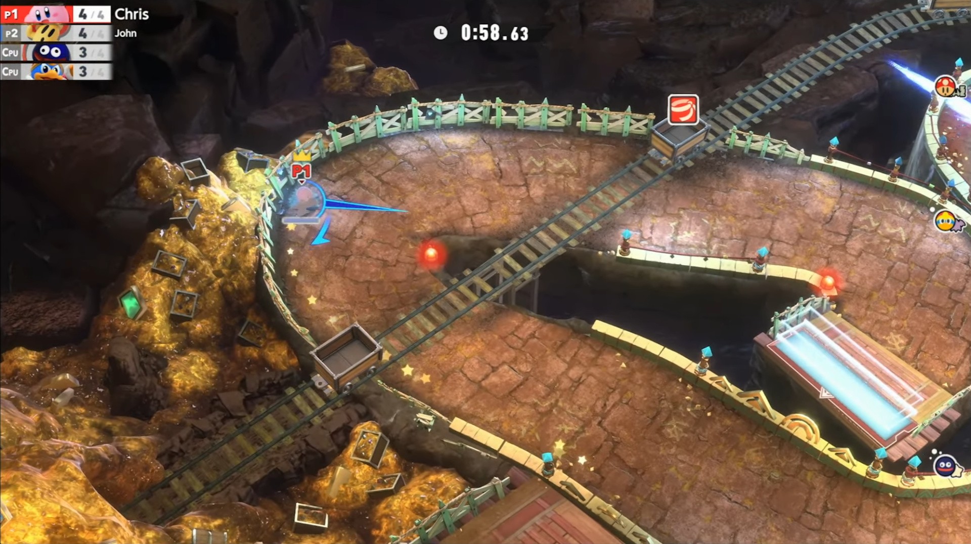 Another windy course, this one's based on Cavernous Corners. Minecarts drop copy abilities, but be careful of the Golem!