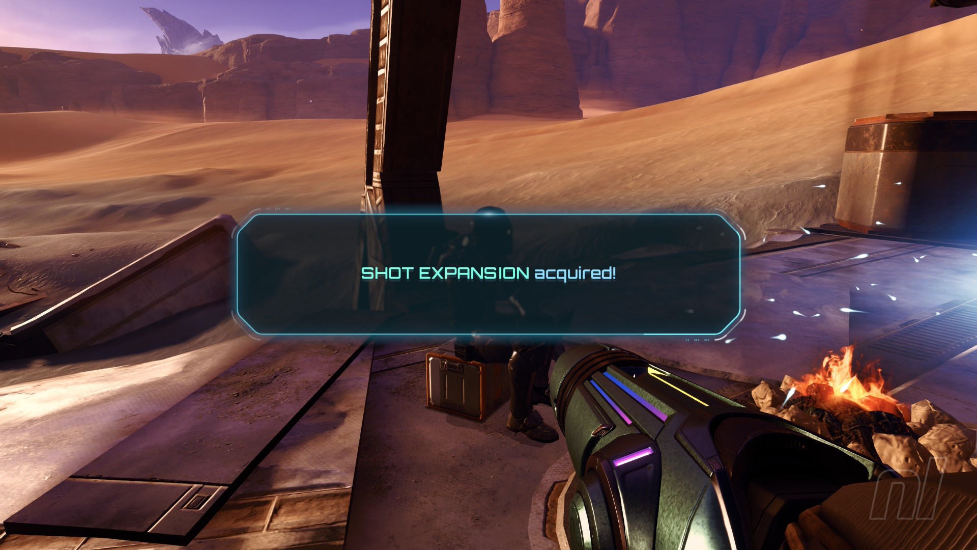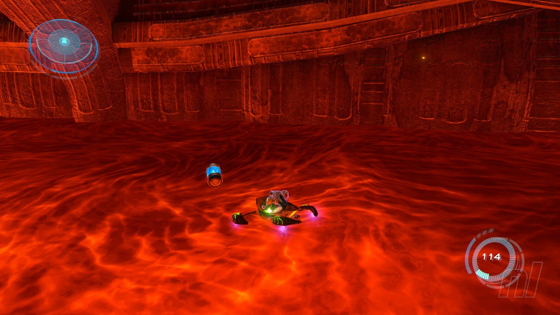 Move to the centre of the room where you'll fall into a small half-pipe. Use the spinner at the end to reveal electrical circuits. Shoot these with the Thunder Shot to open the hatch in the middle. Inside is your next Shot Expansion.