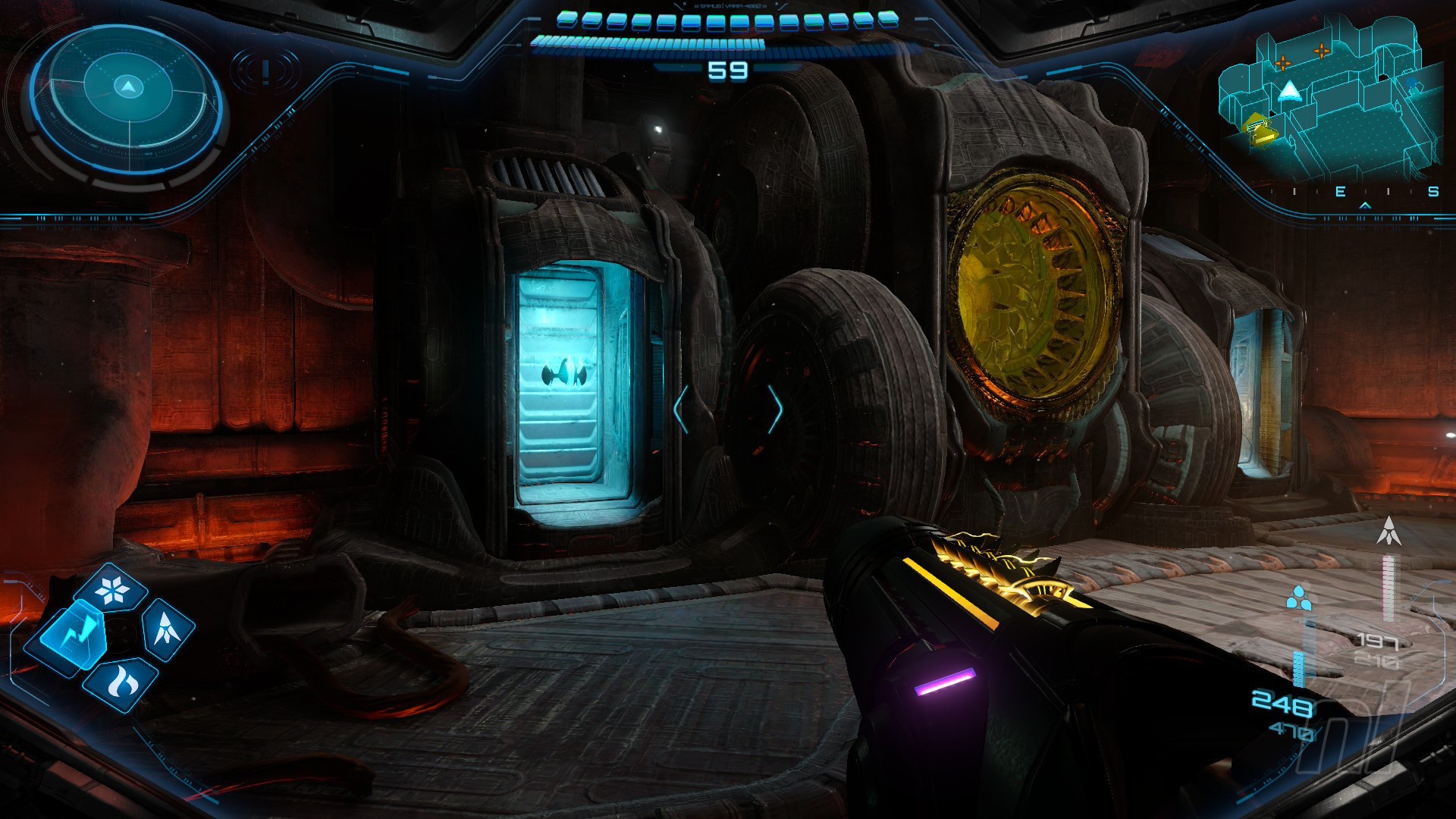 Now go into the Overseer Room. Use your lasso to pull open a hatch up above. Drop a psychic bomb and throw it into the newly-revealed slot. Then, use your Control Beam to hit the three nodes as they pop out of the device.