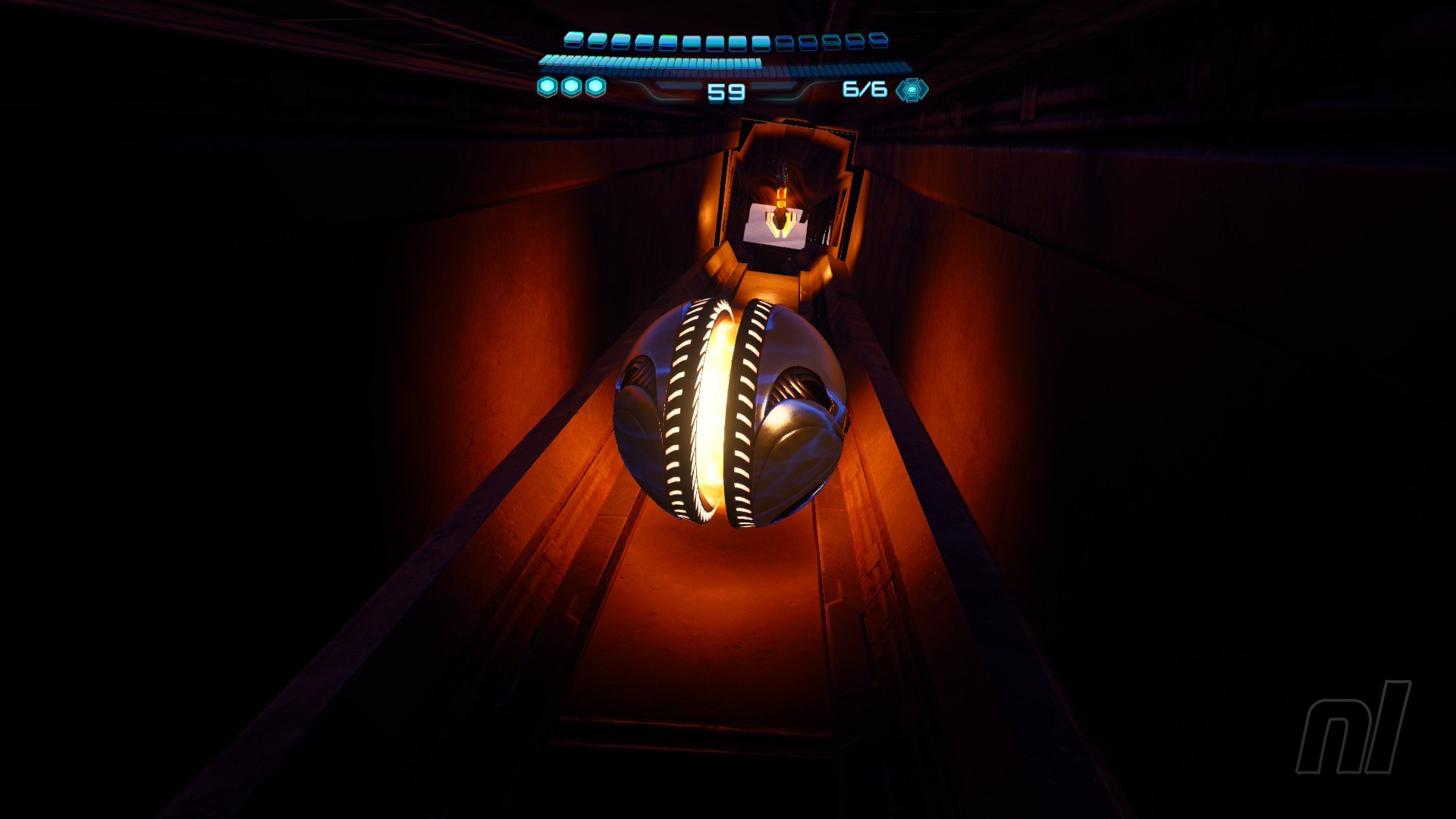 There's another Missile Expansion to grab while we're here. Walk around the building and you'll eventually find a hatch that you can open with a simple burst of electricity from your Thunder Shot. Morph ball through the opening and roll through to find the Expansion.