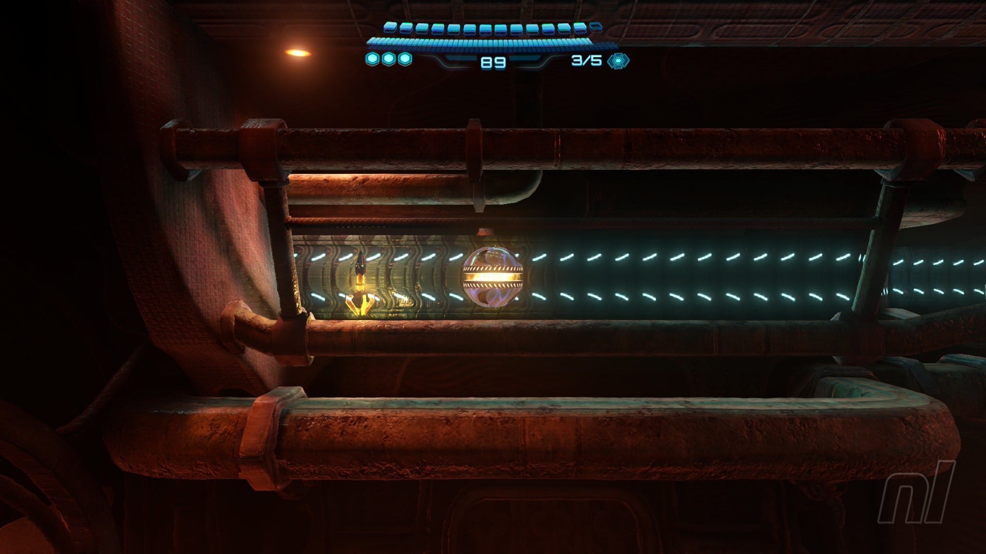 Go up the elevator by the Ventilation Works and move into Inspection Station. At the end, use the Fire Shot on the grating to the right and morph ball into the underground tunnel. Follow it up to grab the next Shot Expansion.