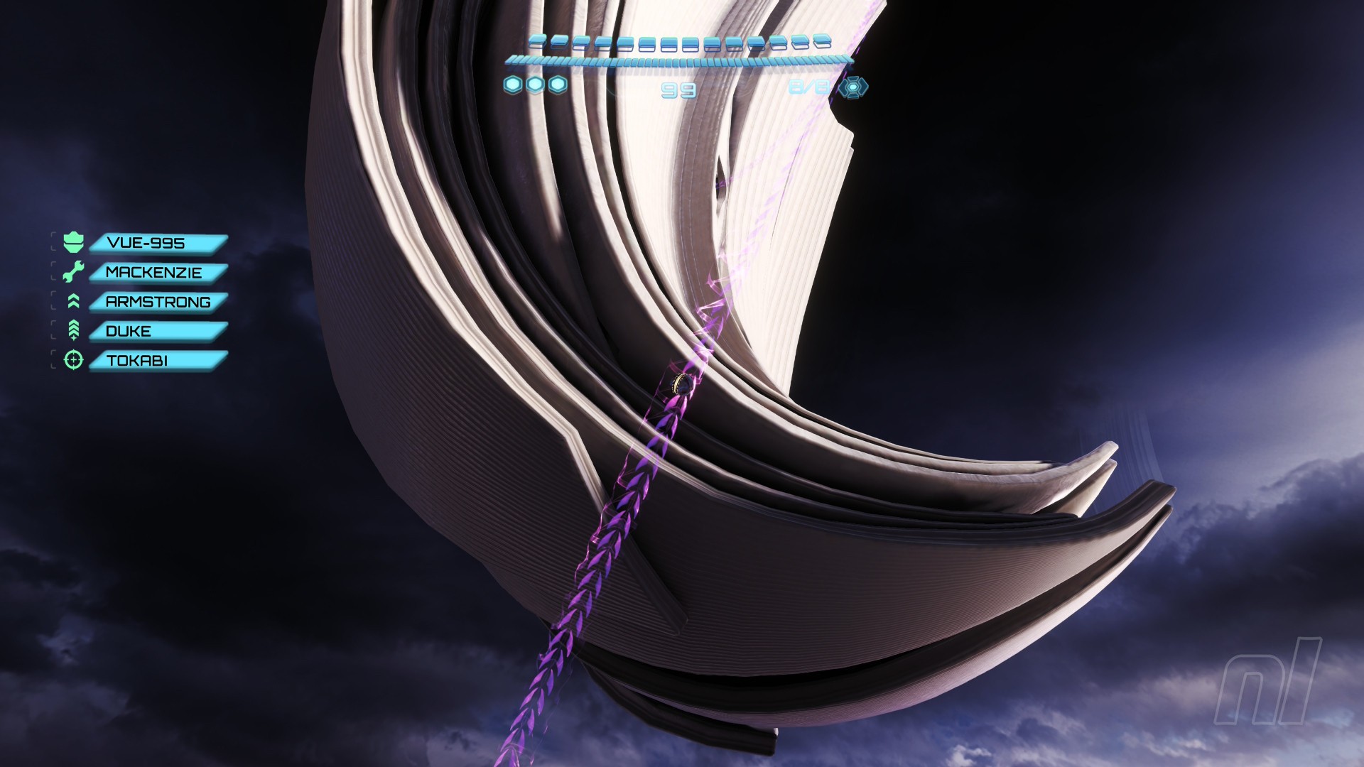 Work your way up to the top of Energy Injection using the grapple nodes. At the top, use the grapple points to swing over to the topmost platform and grab the Shot Expansion.