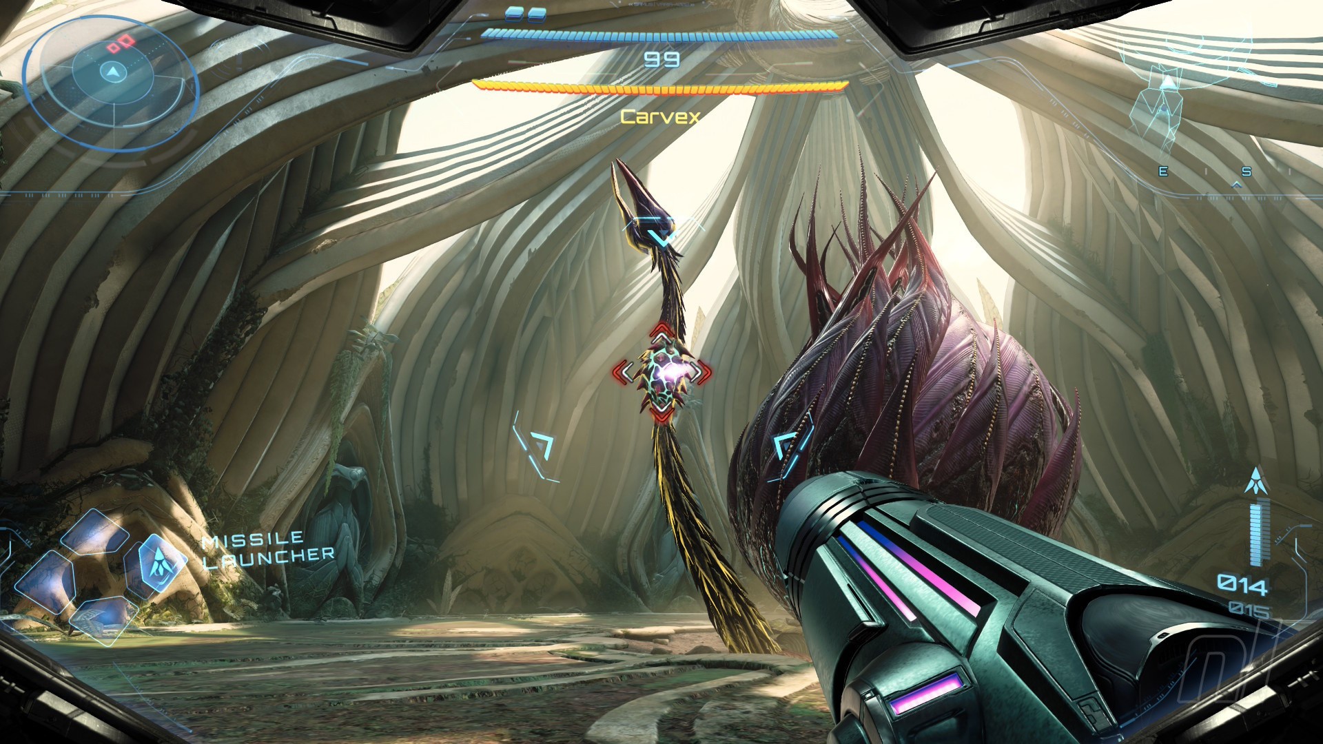 Once that’s done, repeat the same process to damage Carvex by shooting the Metroid within, avoiding spikes as you do so.