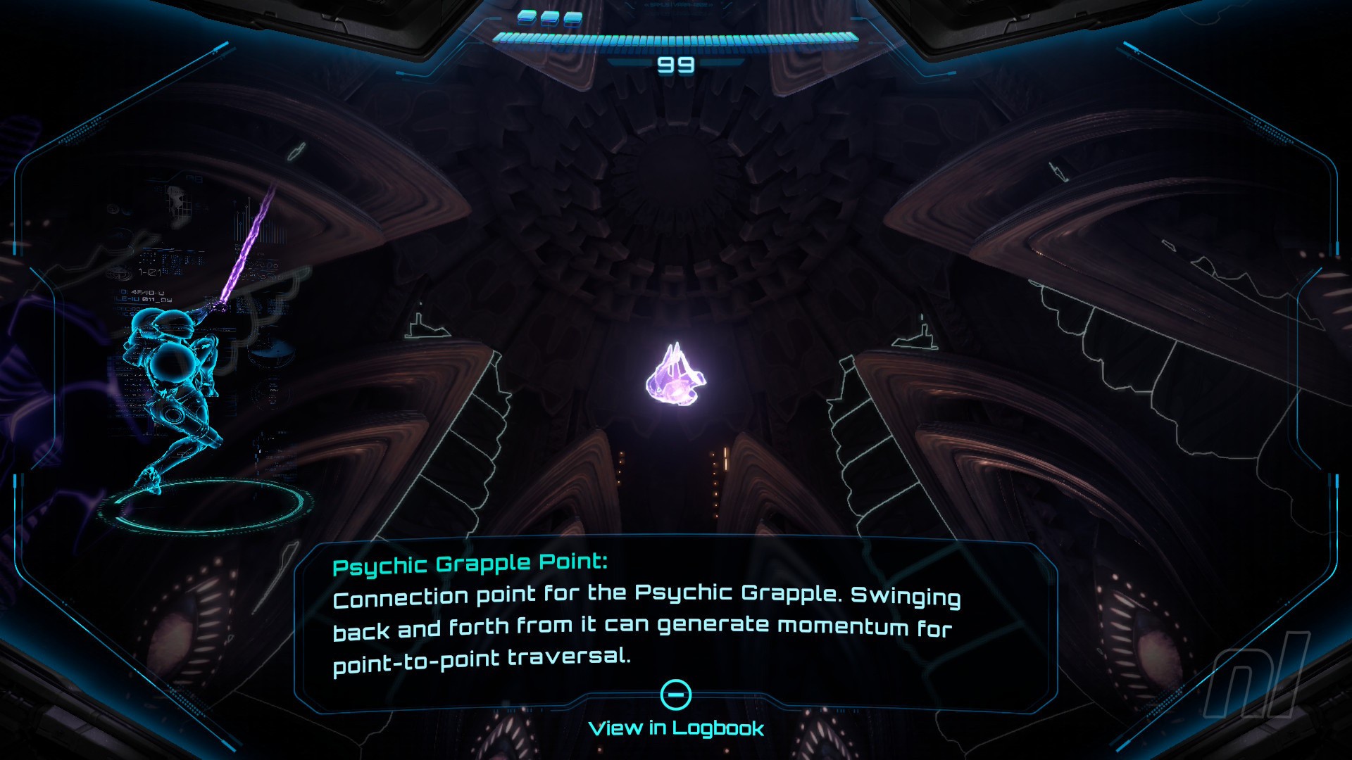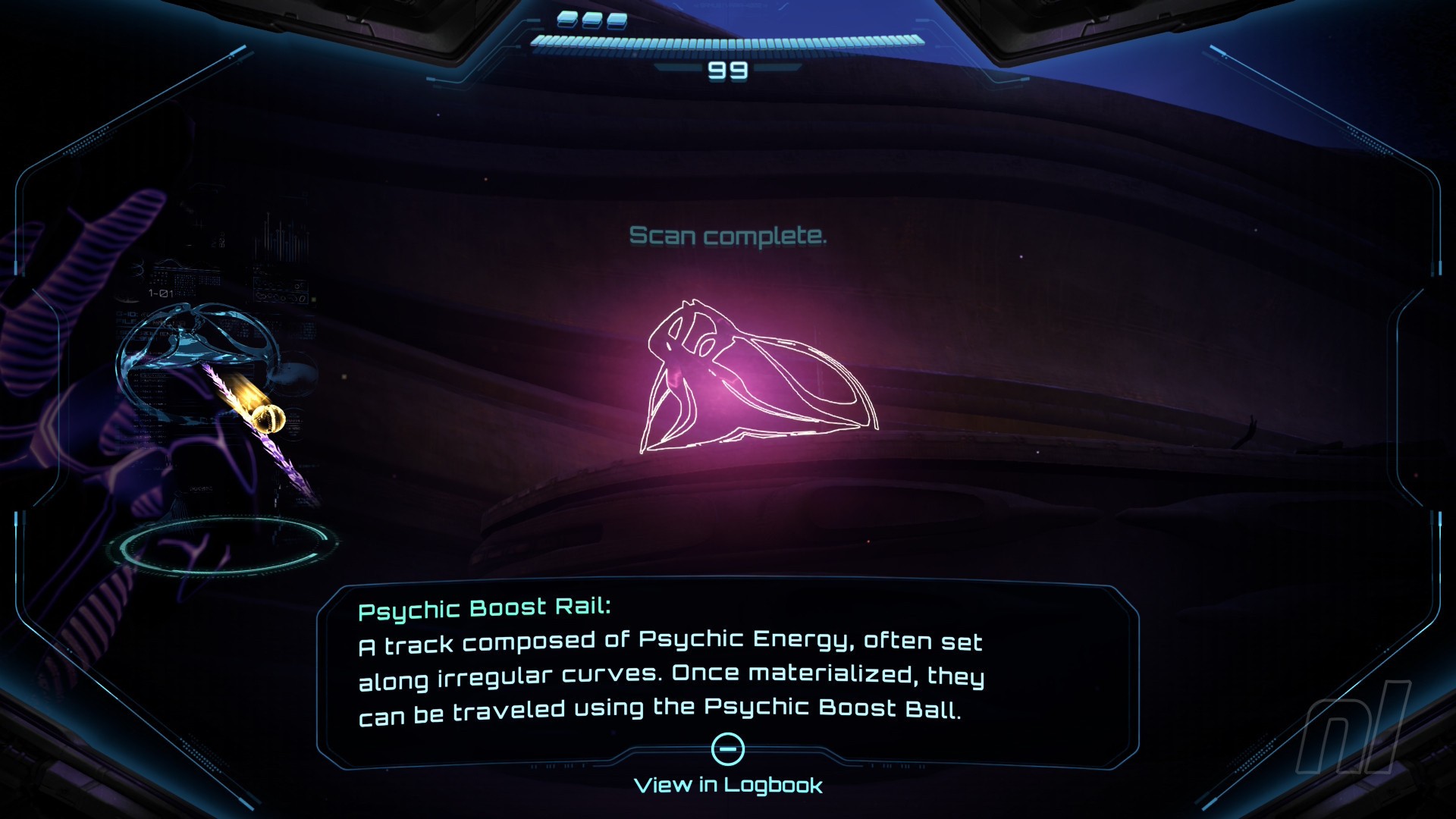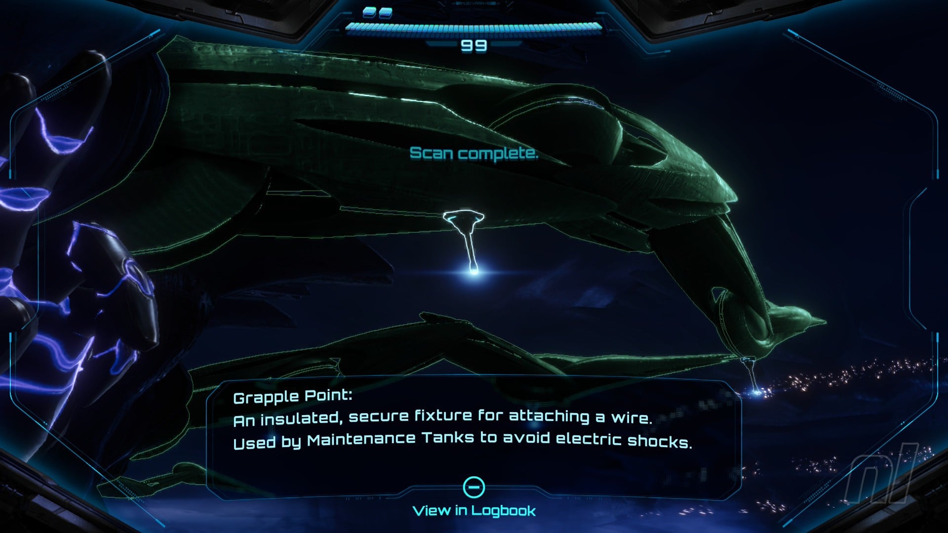 Up above, you'll see what looks like a familiar Spider Rail from the rest of the Metroid series. Scan it!