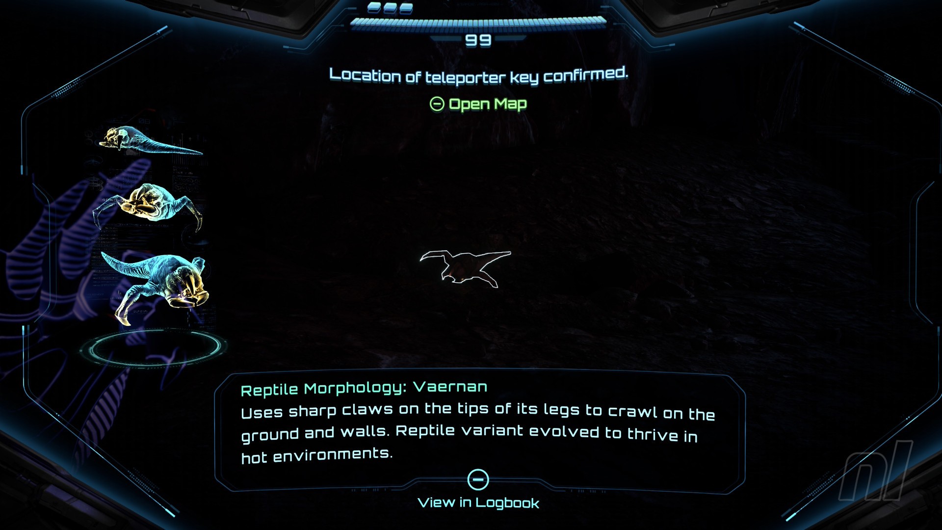 Move into the Loading Airlock. Here, you'll see little creatures scurrying around call Denzards. Scan one of them, but don't worry about shooting them; they won't both you.