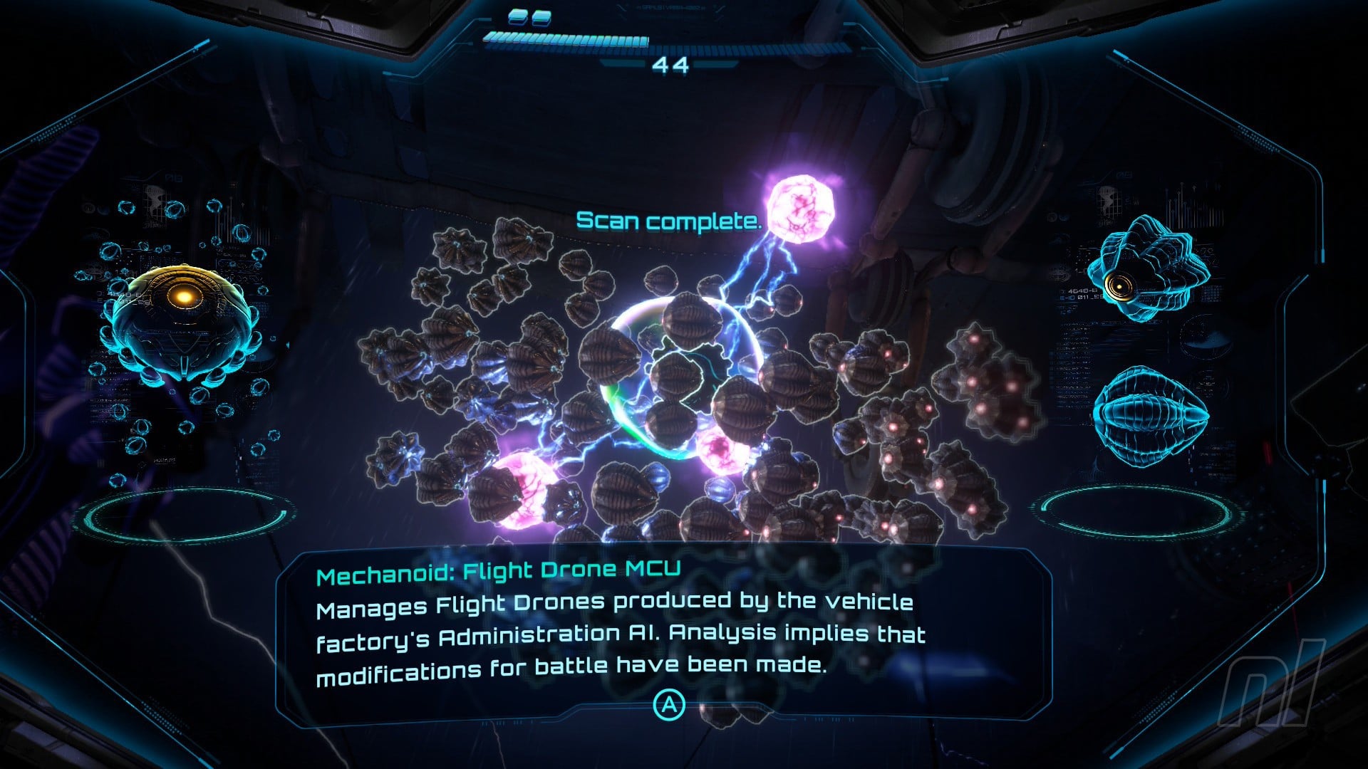 Scan the Flight Drone MCU. Now get ready to fight. You'll want to use the Control Beam to hit the three nodes surrounding the MCU. Ideally, get rid of a few of the smaller Flight Drones flying about to make this easier.