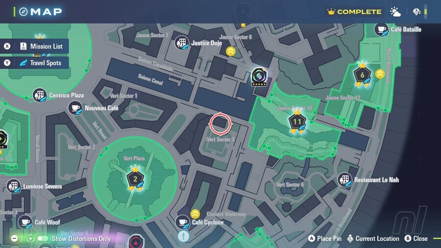 You need to head to the rooftop of the C-shaped building in Vert Sector 3, just right of Wild Zone 2. The easiest way to get there is to warp to Café Cyclone, then head to the left to find an opening in the budlings. Enter the courtyard and use the transported to reach the roof.
