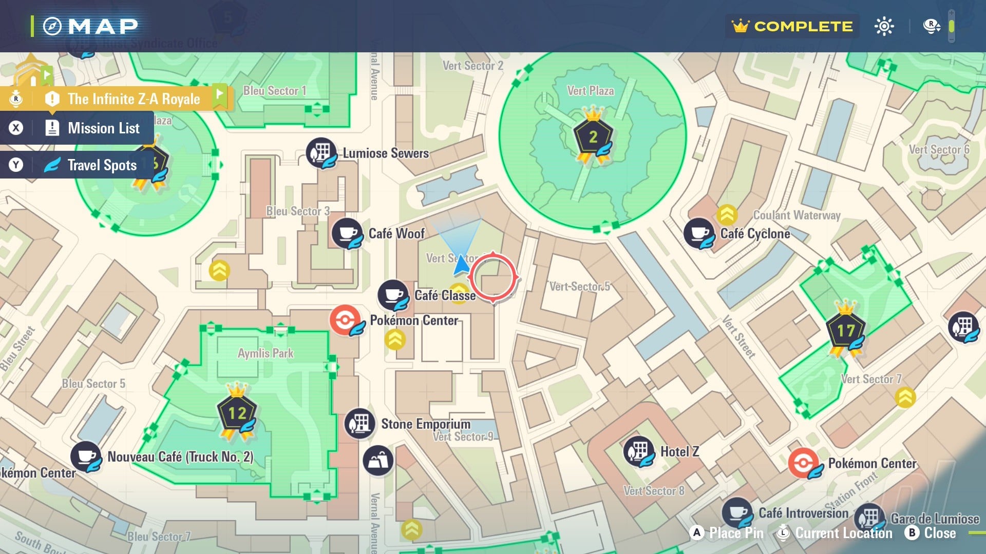 So, you want to head to an enclosed courtyard in Vert Sector 4. It's about halfway up Vernal Avenue on the right side, right behind Café Classe.
