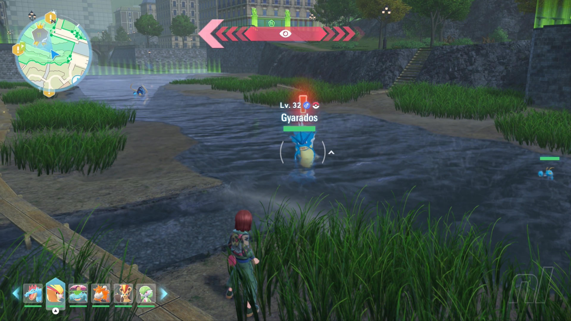 | Gyarados | Water/Flying | Swimming in the river, near the Alpha Clawitzer |