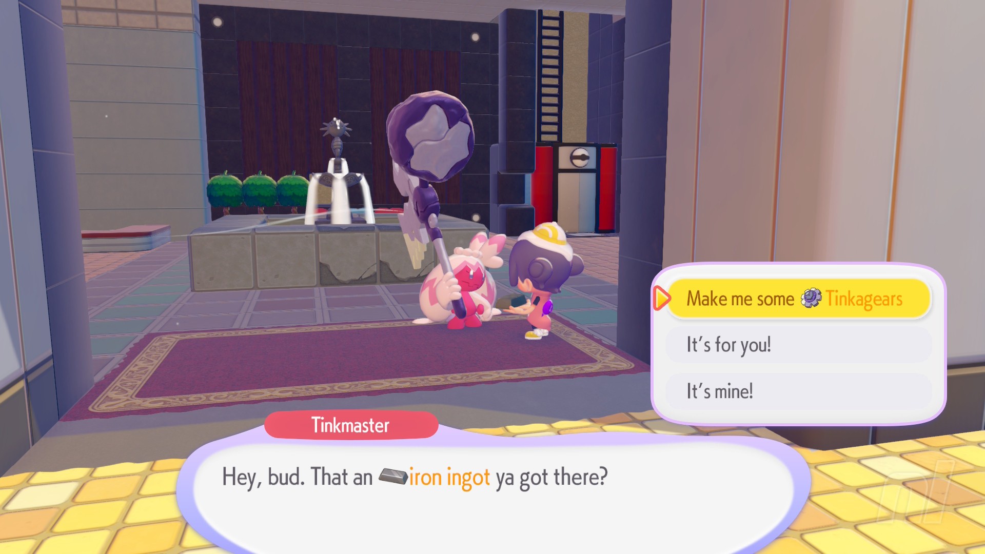 Lastly, give them some Iron Ingots and they'll make you some Tinkagears, which you'll need to build some late-game structures like lifts and elevators, builds that are necessary for a certain Eeveelution.