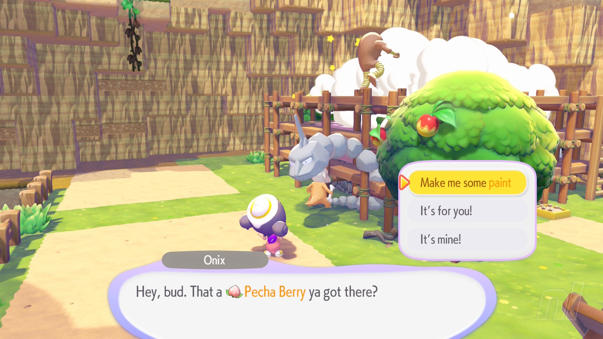 Another exclusive Specialty, Mosslax is a hungry chap. Give them some food and, depending on what you give them, they'll offer you some benefits for the day. That could be making items more common, or it could affect the spawn rate of new Pokémon.