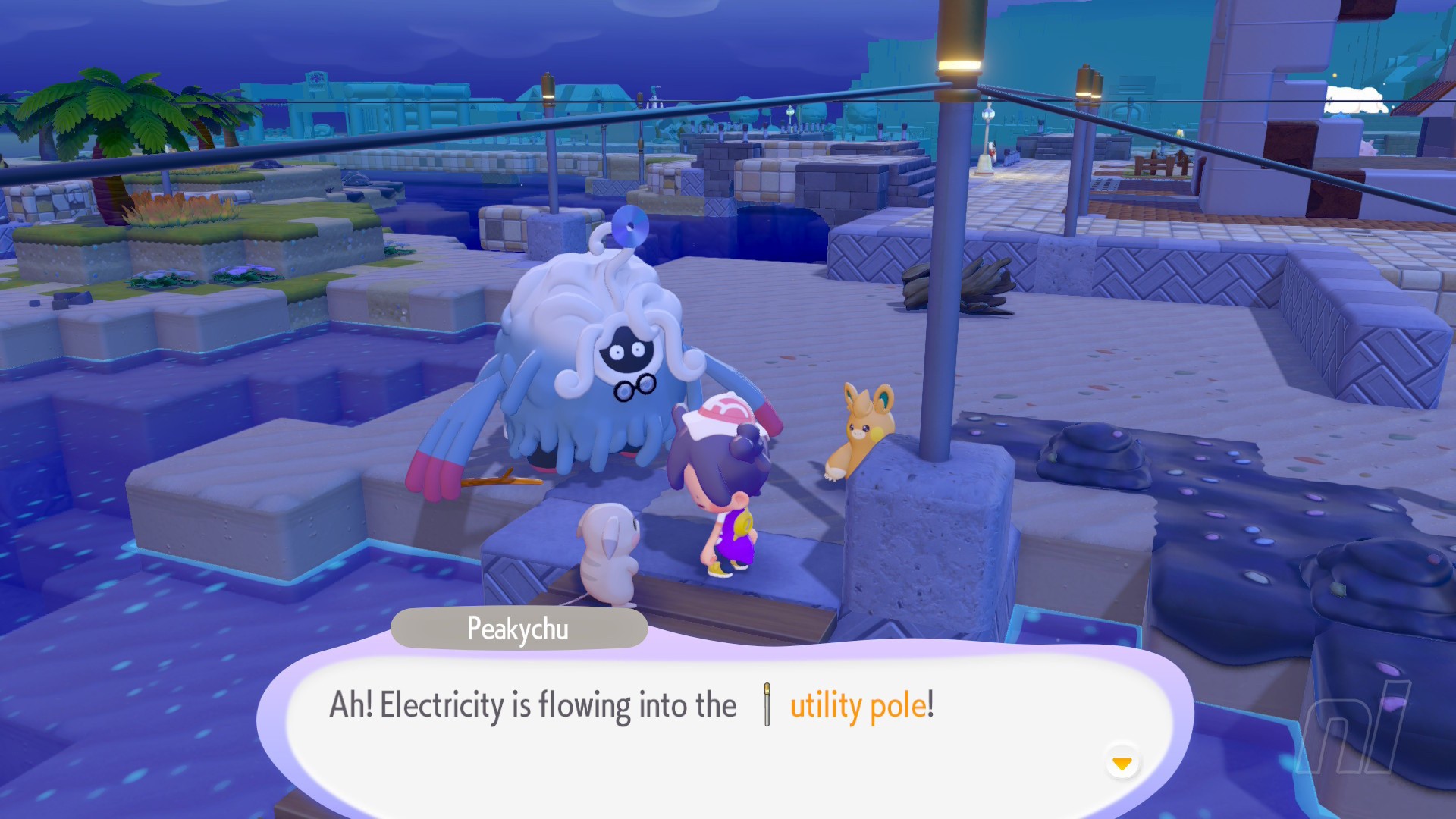 Peakychu has another tip for you, and she'll lead you to a windmill on the ocean. This is where you'll find out about Generators and Utility Poles, and this is ultimately how you'll get enough power to brighten up the place.