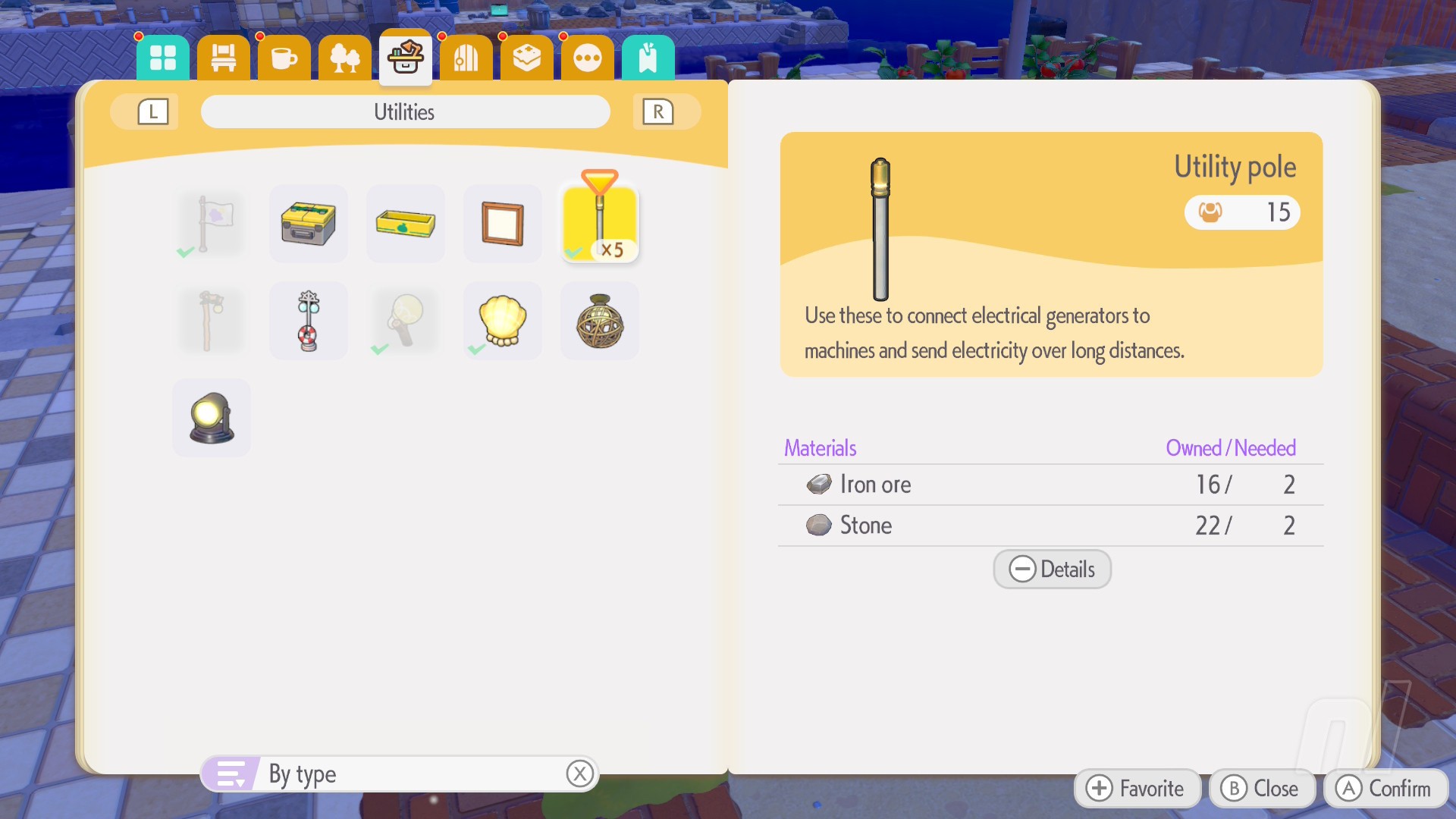 First up, you want to place some poles on the blocks with circular dots, and you'll see how they connect up and get some power. You'll be doing this a lot for the rest of this chapter!