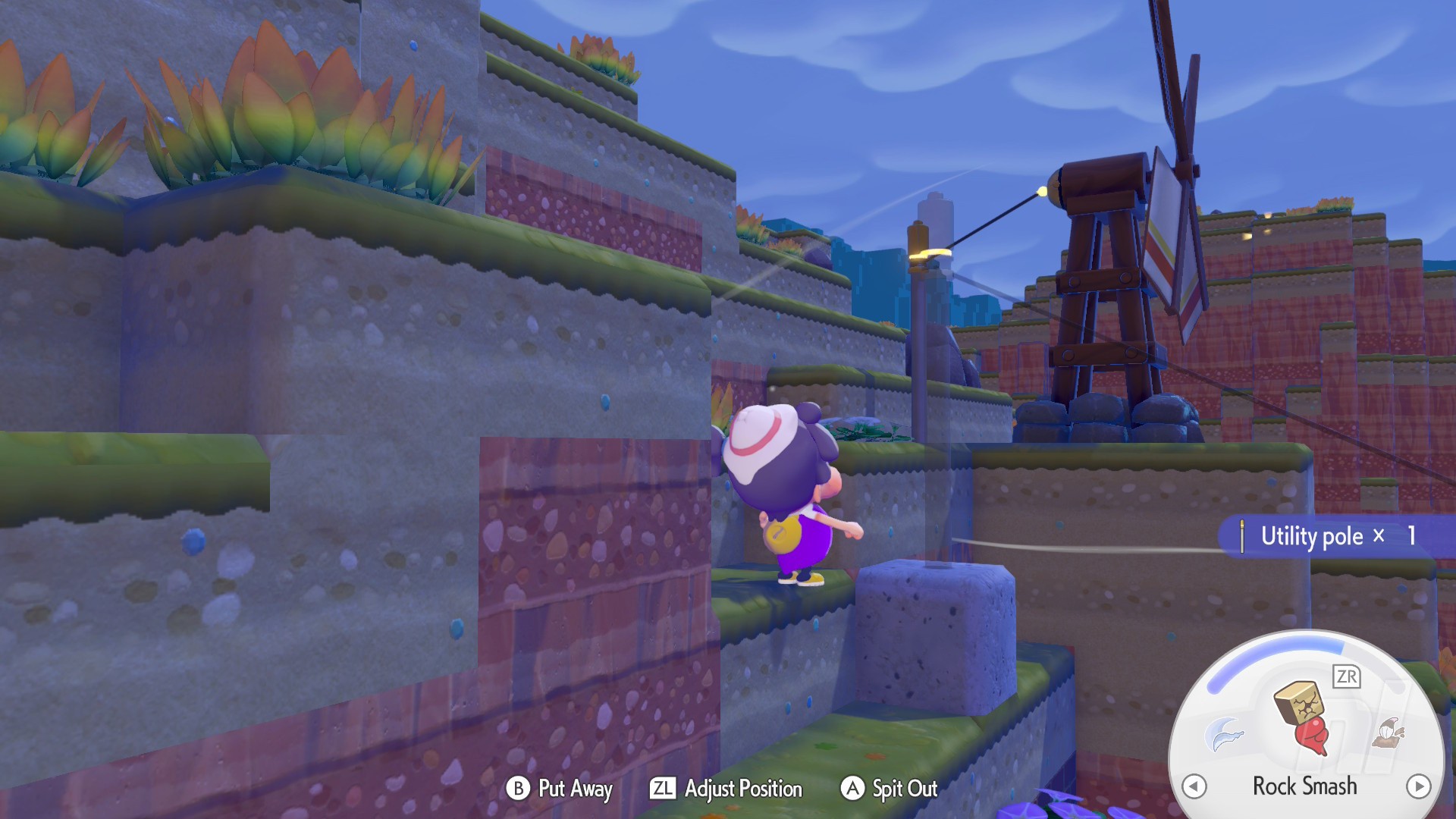 - Trubbish wants to investigate the big building on top of the hill here, so take him up there. Along the way, you'll spot some spots where Utility Poles look right at home. These can connect all the way down to the waterwheel or to the windmill on the nearby cliffside.