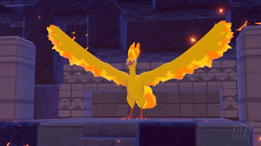The last of the three birds, Moltres, has taken up residence inside your Altar of Flame. Well, once it's built, anyway. The kit is on the northwestern island, on top of the altar.