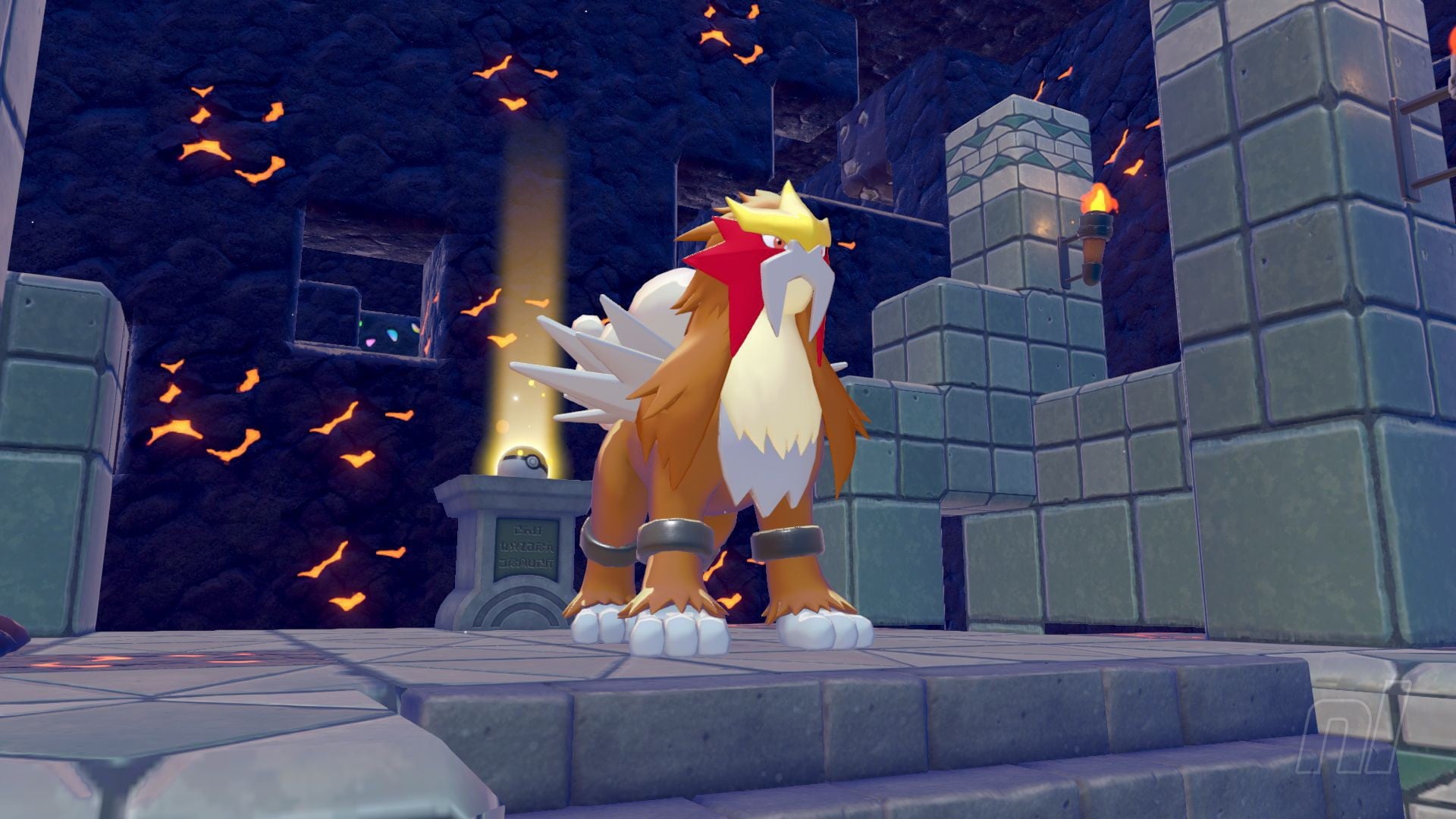 Same as Raikou, jump down the entrance and follow the path down. You'll notice the inside of this mountain has considerably less lava than outside, but if Entei is here, you'll see a boxed-off corner with Lava Blocks stopping your progress.