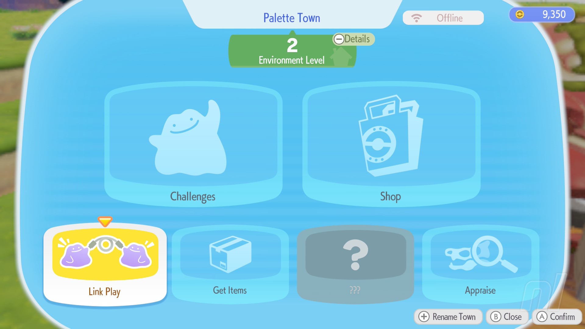 First thing to note, GameShare is only available in Palette Town — the completely optional island where you can build and customise to your heart's content.