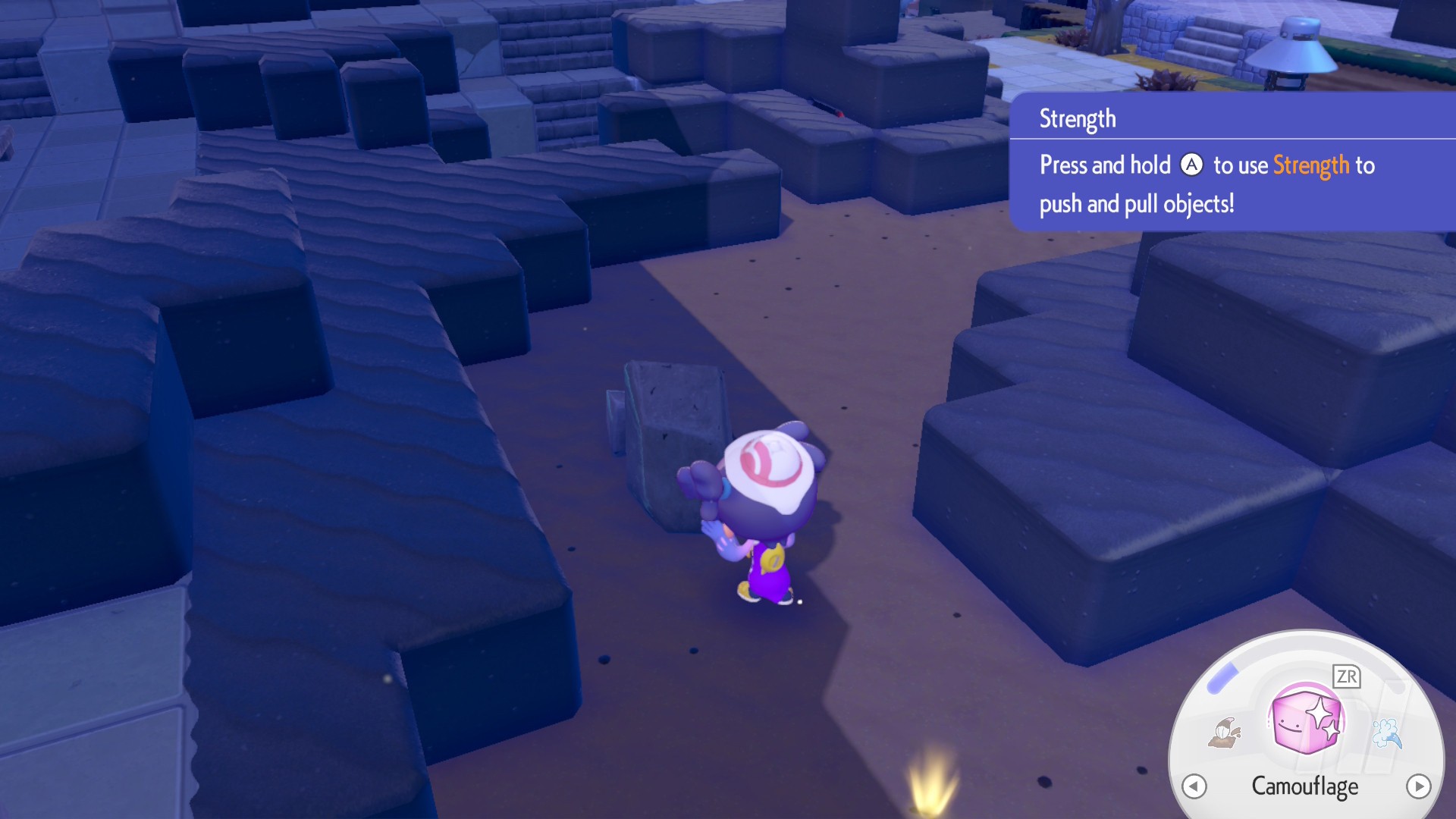 Grab five stones for the 'mon and hand them to him, and then he'll teach you the Strength Skill, allowing you to push boulders around. In a display of your new power, push the nearby pile of rocks towards Machoke and he'll be flabbergasted.