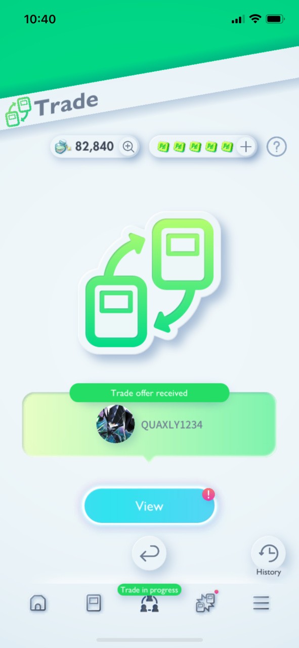 You'll receive a notification when your Friend replies to the request. Select 'View' on the Trade homepage to see your Friend's offer and then either press 'Decline' or 'Trade'. Swipe up on your card to send it away and you will receive the offer card in return.