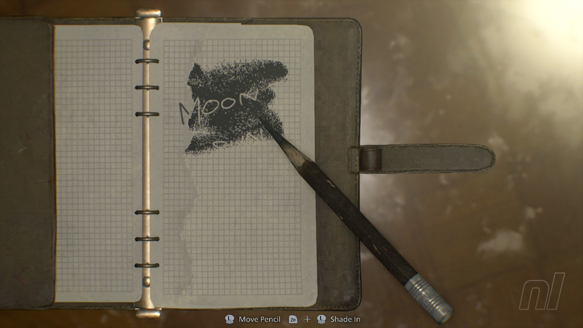 You'll be prompted to hold 'ZR' and move the analogue stick around to shade in the sheet of paper, thus revealing the following words: