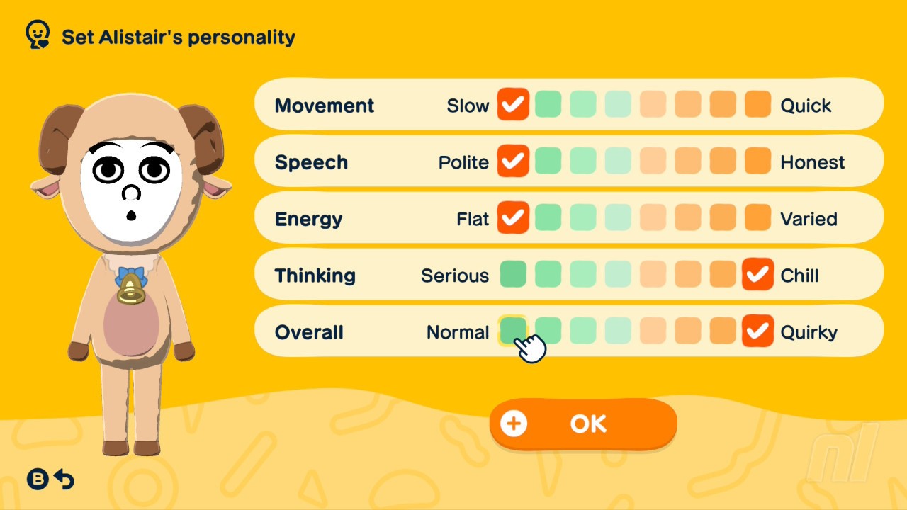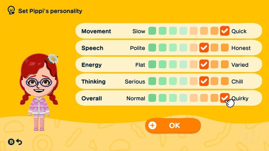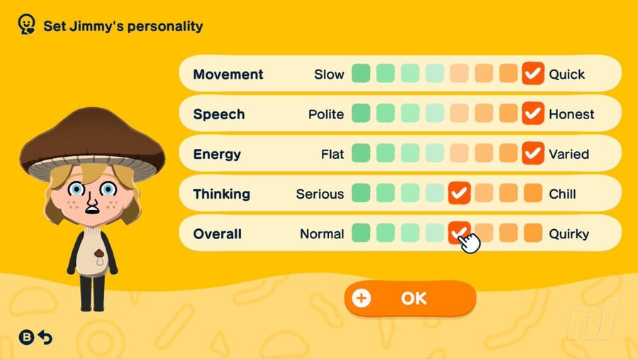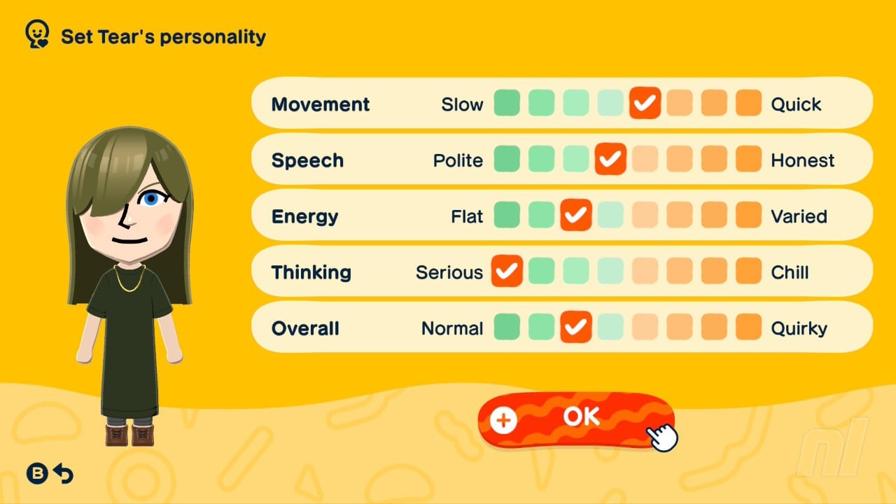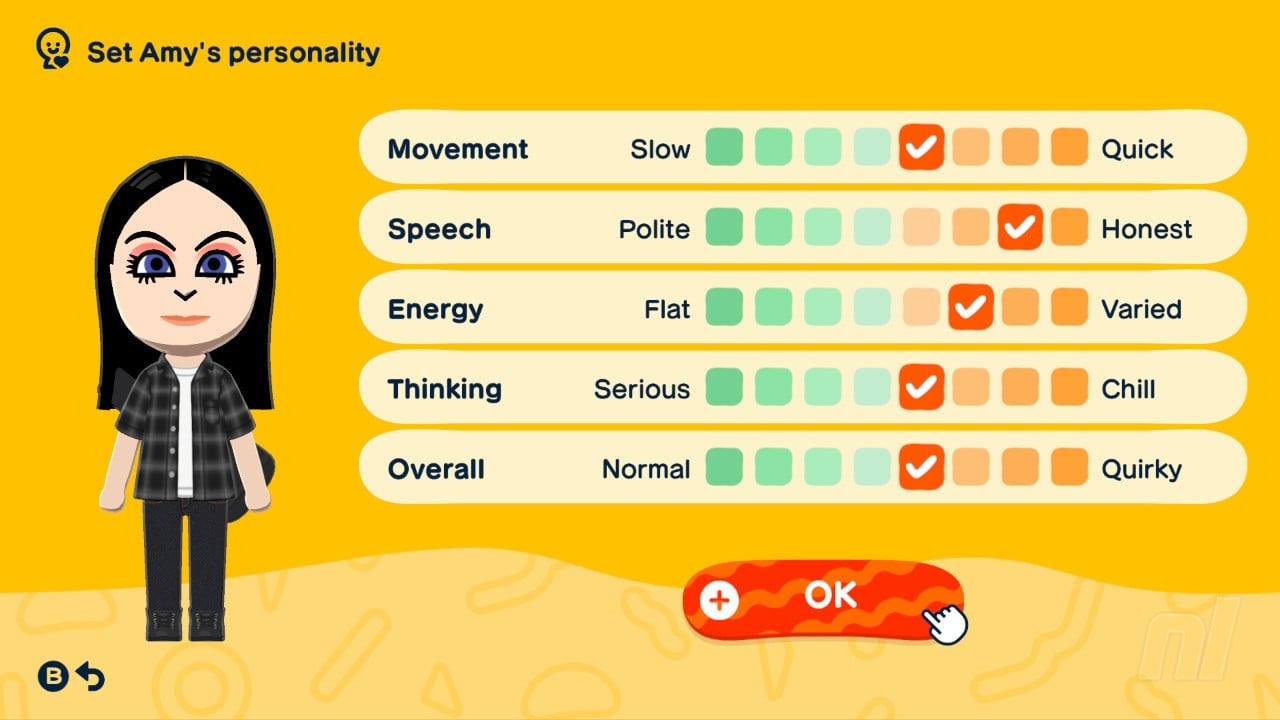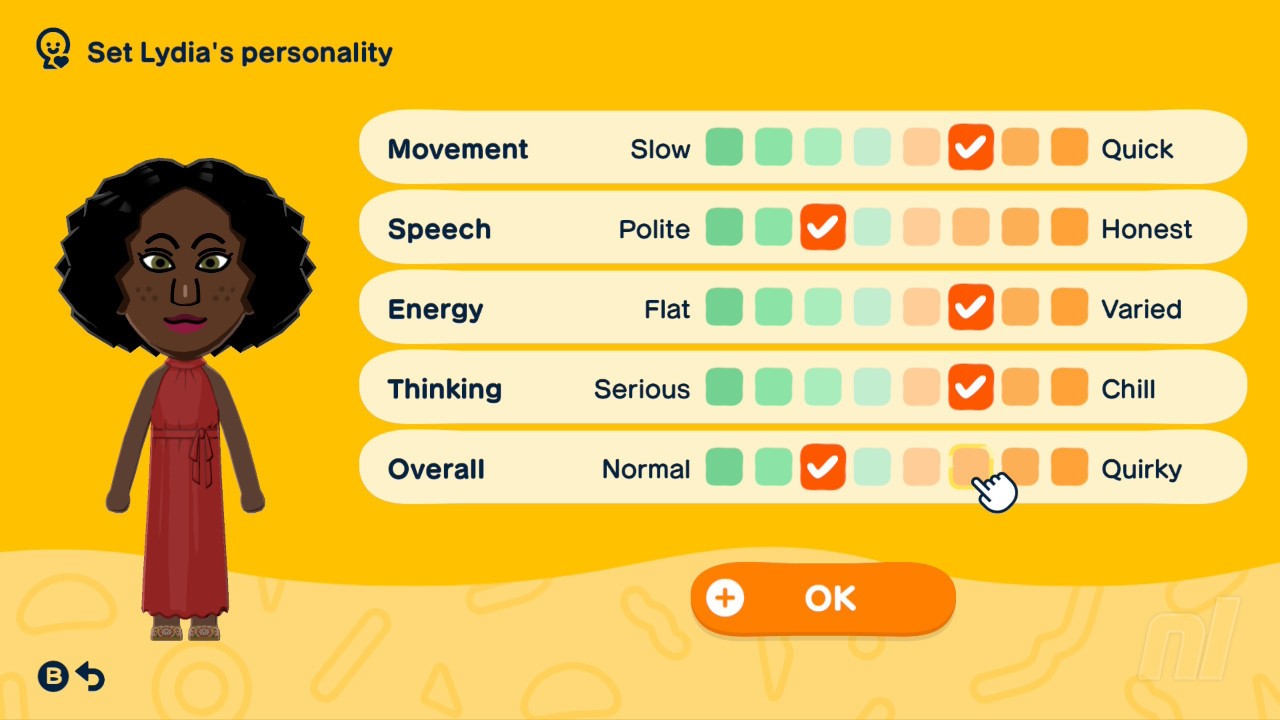 Below you'll see all the personality types you can create in Tomodachi Life: Living the Dream. When creating a Mii's personality, you want to focus on Movement, Speech, Energy, and Thinking — Overall does not count towards the Mii's personality.