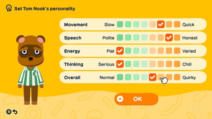 At the moment, we think there are only two things personality types affect. The first is Mii reactions, attitudes, and how they act across the island. They'll sit down in different positions, examine things differently, and interact with others differently, too.