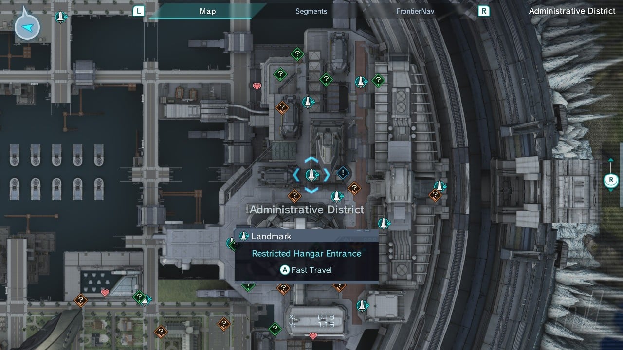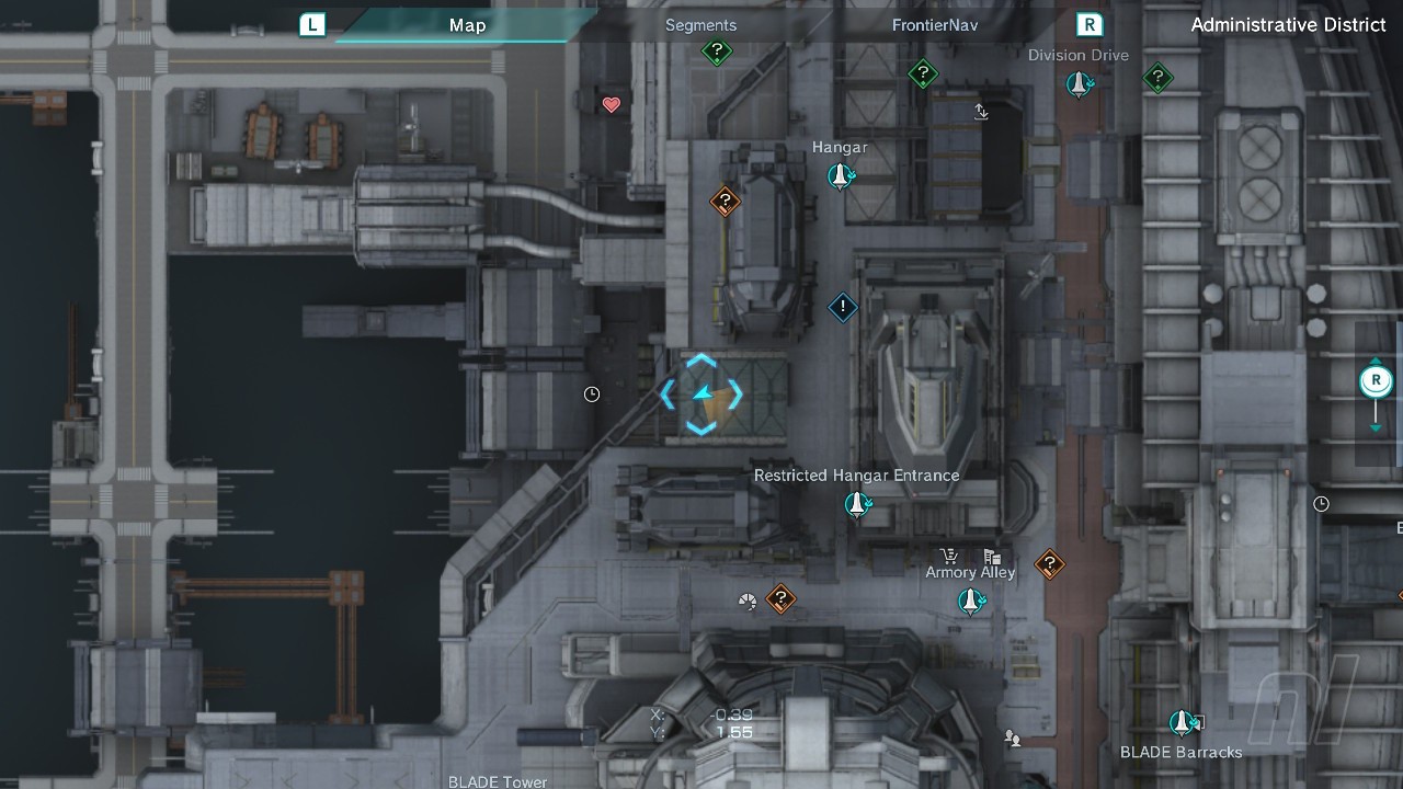 First things first! Make your way to the Outfitters Yard and hangar, which you can find in central NLA, as shown.