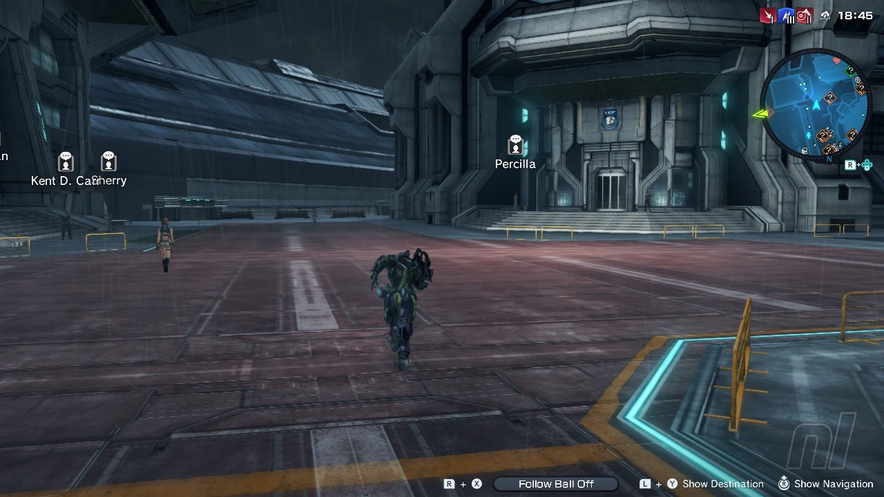 So, with your back to the Mission Console, head right and follow our screens below, turning right again when you see Percilla, then jumping over the barrier beside C-01 elevator here to land on the highway below (shortcuts, baby!)