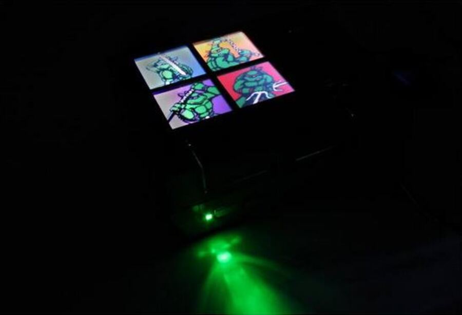The console features Leonardo, Raphael, Donatello and Michelangelo on a backlit panel, with four custom designed controllers that are colour coded according to each of the respective heroes.