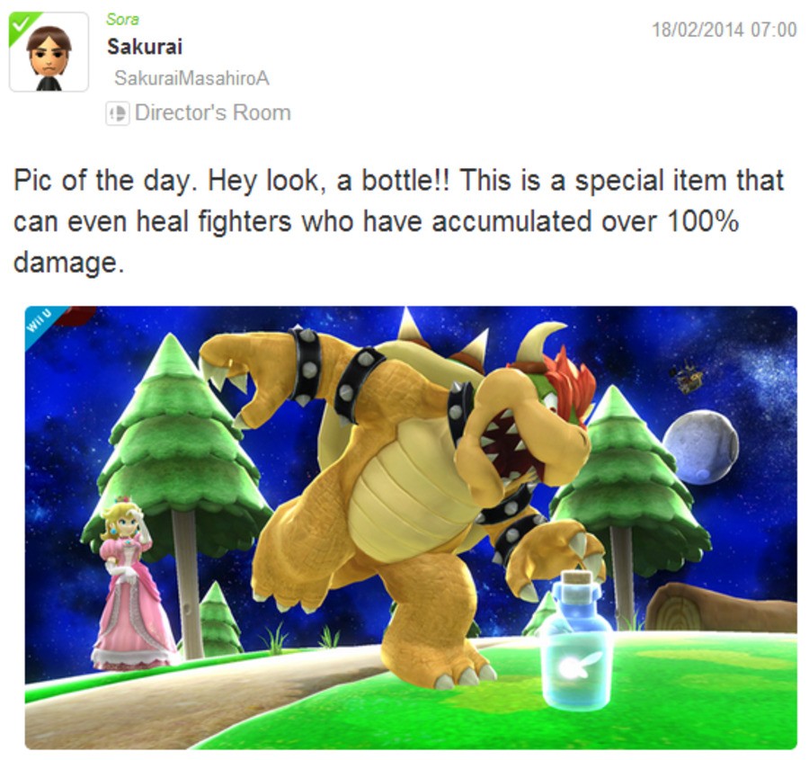 Beyond that new challenger announcement, the Super Smash Bros. Director's Room once again included some images there just for fun, and others that reveal a little about how the game will play. A well known item from the Zelda franchise will offer some healing respite, for example, while the sizes of characters seemed to be a theme.