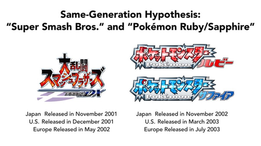 Iwata has coined the wacky phrase "Same-Generation Hypothesis" to explain this situation; he feels that the gamers who enjoyed the likes of Super Smash Bros. Melee and the original Pokémon Ruby & Sapphire a decade ago are now driving sales for these newer versions. Basically, if you played the games as a kid, you're coming back to enjoy them again as a adult.