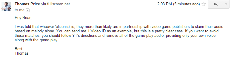 To use the TotalBiscuit example again; the channel has become his life through the massive income he receives... so if Sega threaten to take that all away over a Rome: Total War video or whatever then of course he is going to stop making Sega content; whether the fans want it or not. And that is TB who is a huge presence on YouTube with Polaris (and with that Disney) network power behind him. Compare that to a smaller channel and, yea, they couldn't do anything about it.